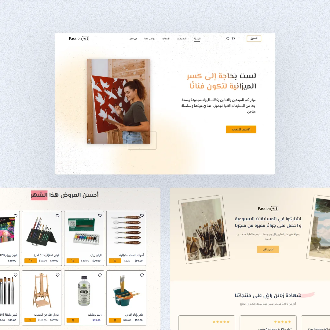 I designed and developed an e-commerce store for "Passion Art," a brand selling art supplies, with the aim of translating the brand’s warmth and inspiration into a digital experience. The challenge was to create a platform that blended visual appeal with ease of use, tailored to an audience largely made up of creative women. The solution was an elegant store design that reflects artistic passion, with a clear product display, special offers section, and a shopping experience that feels like browsing a real art gallery. (Note: The current live site was later altered by the client and is now a copy of the original version I created.)